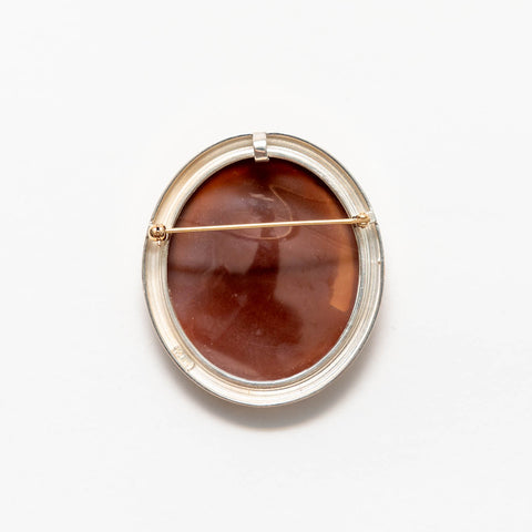 Hand Carved Sardonic Shell Bob Dylan Cameo Set in Oval Sterling Silver Brooch (Can also be worn as a pendant)